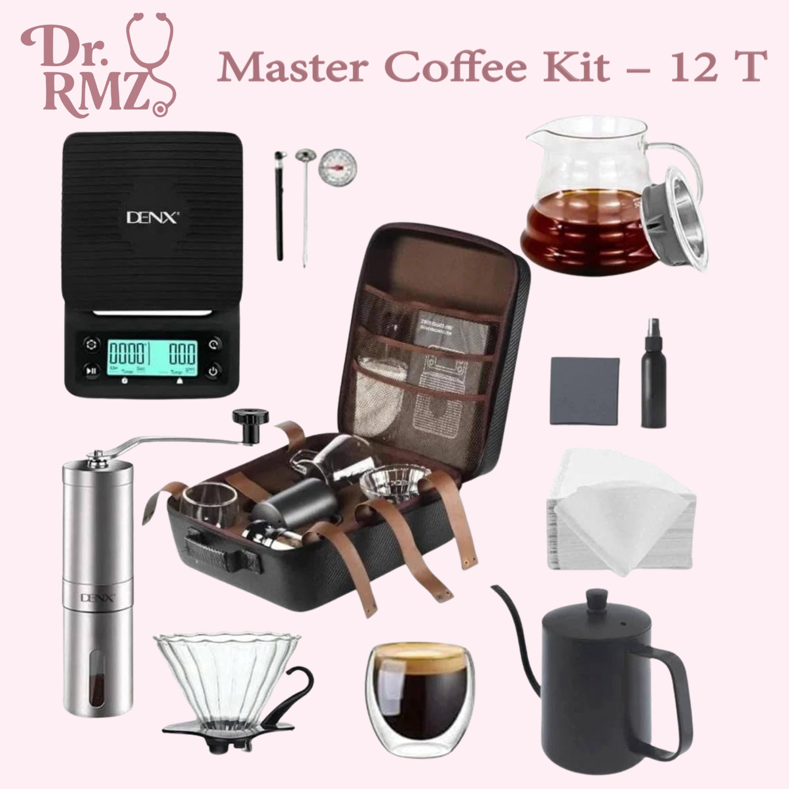 يحتوي على فلاتر قهوة، منشفة تنظيف، بخاخ، حقيبة سفر، طاحونة يدوية للقهوة، سيرفر قهوة زجاجي (٦٠٠ مل)، أداة التقطير، إبريق ستانلس ستيل (٦٠٠ مل)، كوب قهوة (٢٥٠ مل)، ميزان قهوة، ملعقة قياس، ومقياس حرارة للقهوة 💌